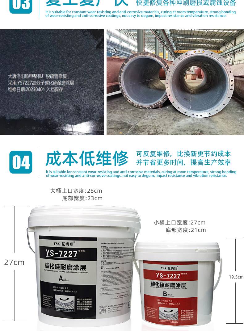 亿尚翔YS7227耐磨耐腐蚀碳化硅涂料 金属修补剂 脱硫除尘脱硝防腐剂